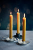 Chandelle en cire d'abeille.  100 % naturelles et moulées à la ferme, nos chandelles sont composées de cire d'abeille certifiée biologique et d'une mèche en fibre naturelle.